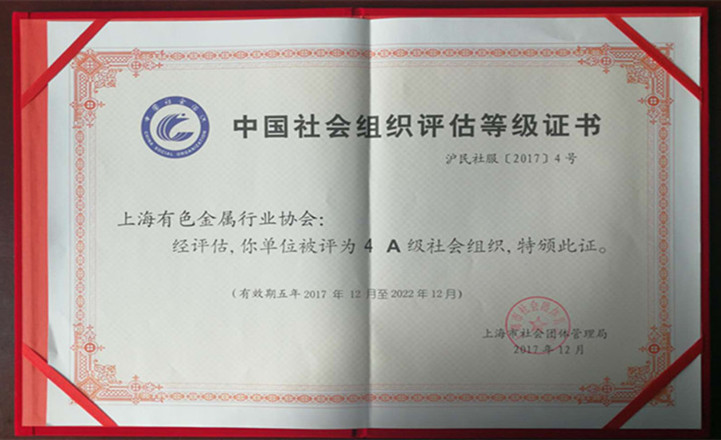 - 2018年2月,上?,F(xiàn)代服務(wù)業(yè)聯(lián)合會授予上海有色金屬行業(yè)協(xié)會2017年度優(yōu)秀活動獎。